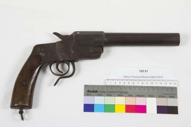 FLARE PISTOL, CALIBRE 1 1/16". NELSON PROVINCIAL MUSEUM COLLECTION: 121.51.